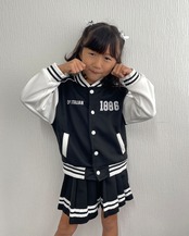 袖のロゴ刺繍がポイントのスタジャンと、