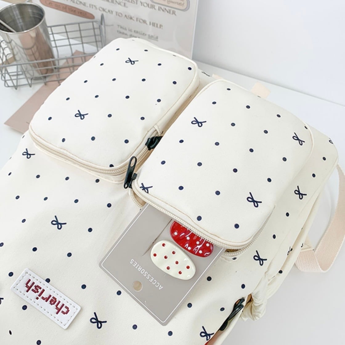 ドットリボンデザインリュックサック
